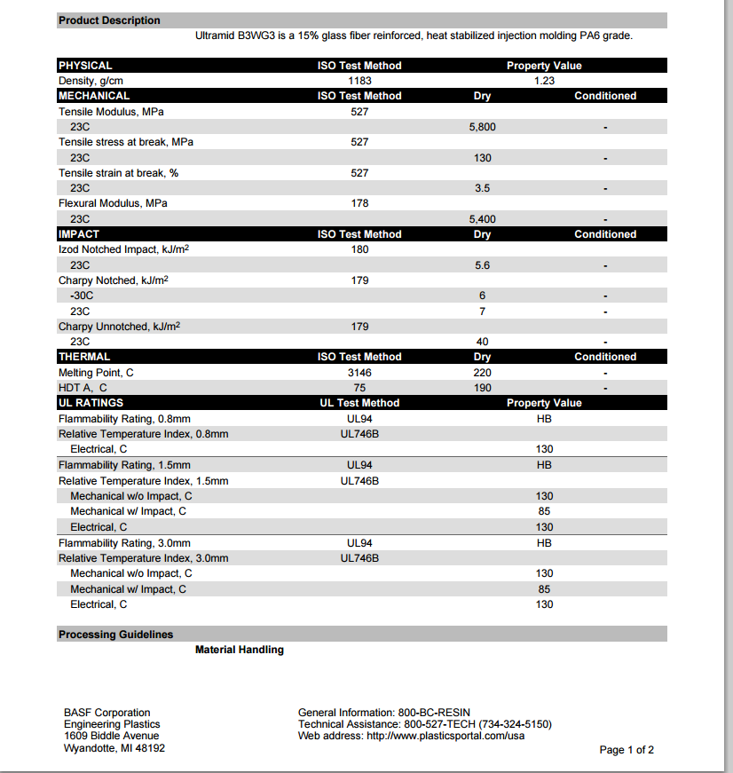 Ultramid B3WG3 15%玻璃纤维增强,热稳定注塑PA6 级