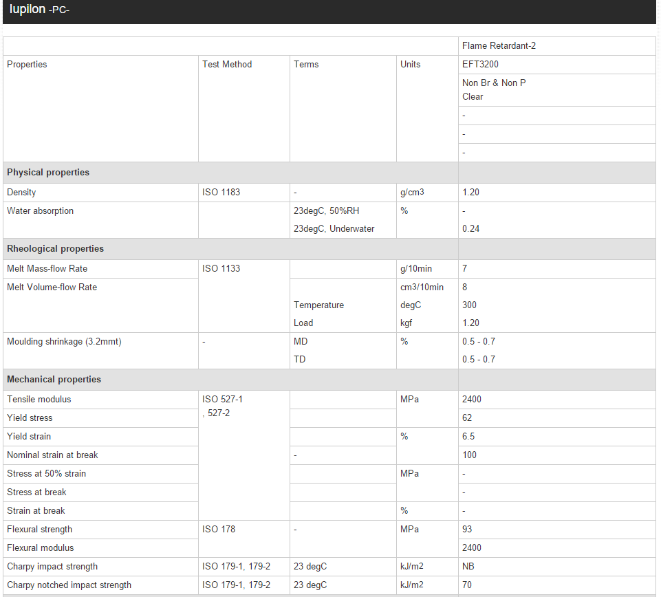 Iupilon PC EFT3200 阻燃 标准 注塑级
