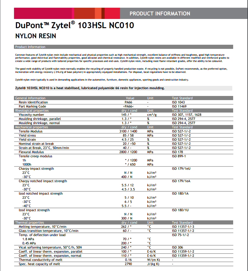 Zytel PA66 103FHSA NC010 未增强,热稳定,尼龙66