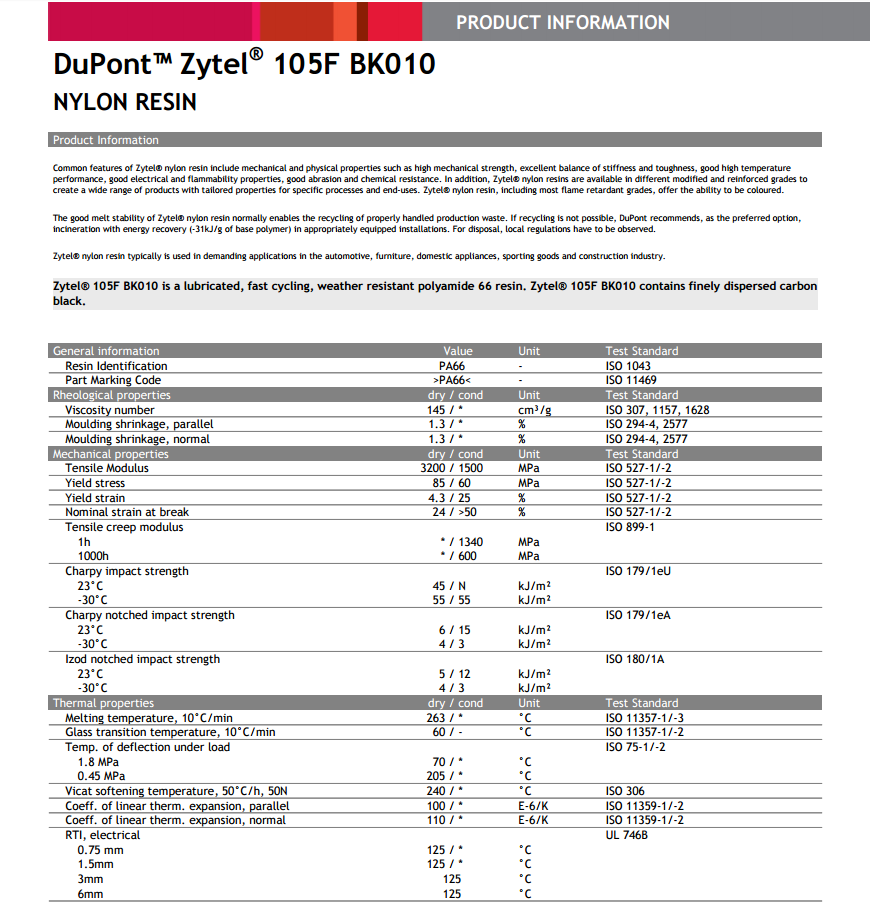Zytel PA66 105F BKB010 未增强,耐UV,尼龙66
