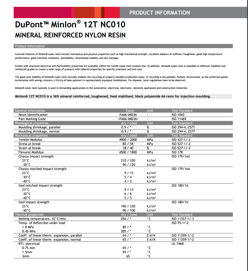Minlon PA66 12T NC010/BKB100 36%矿物增强,增韧,热稳定,尼龙66