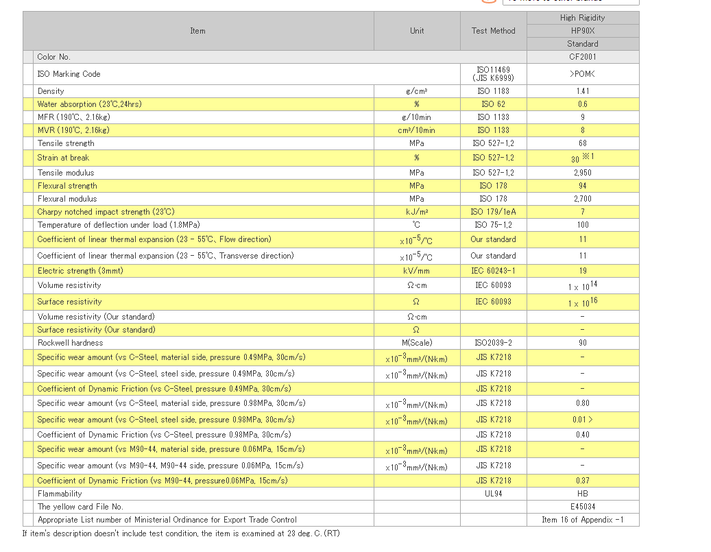 DURACON POM JW-03 CF2001 特殊润滑剂, 高性能高滑动性