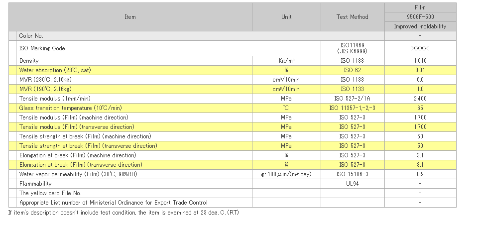 TOPAS COC 9506F-500 薄膜应用 成型性改良型