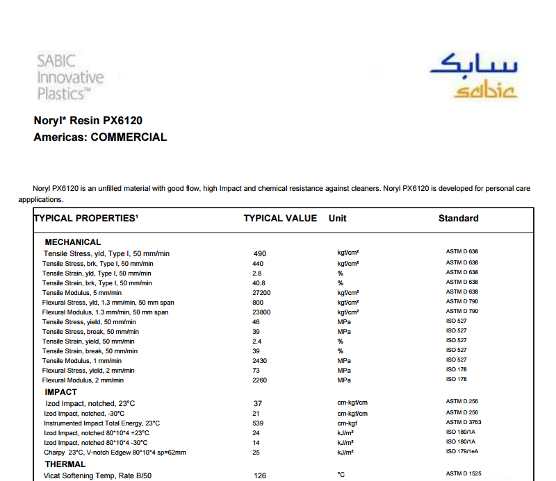 Noryl PPO PX6120 良好的流动,耐冲击和耐化学性