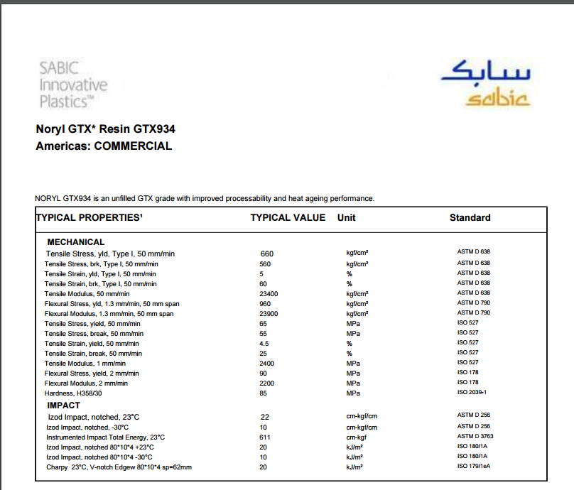 Noryl PPO GTX934 高流动性 / 高耐热性 未增强型 注塑