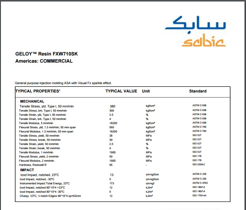 Geloy ASA FXW710SK 非汽车用 注塑级